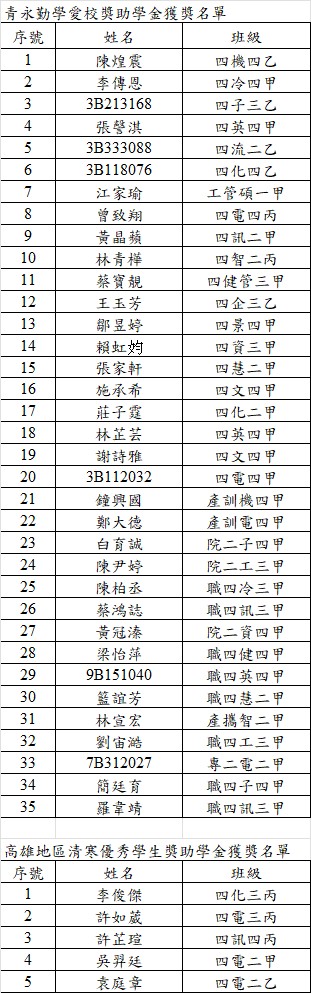 115年青永與高雄獎助金獲獎名單-調查email已寄出-請回覆(已寄2次)